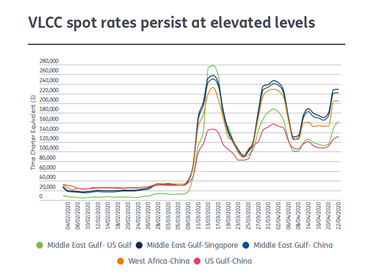 Tanker tonnage remains tight and oil supply cuts have not kicked in yet, making VLCCs, which typically move around 2m barrels of oil, still popular.